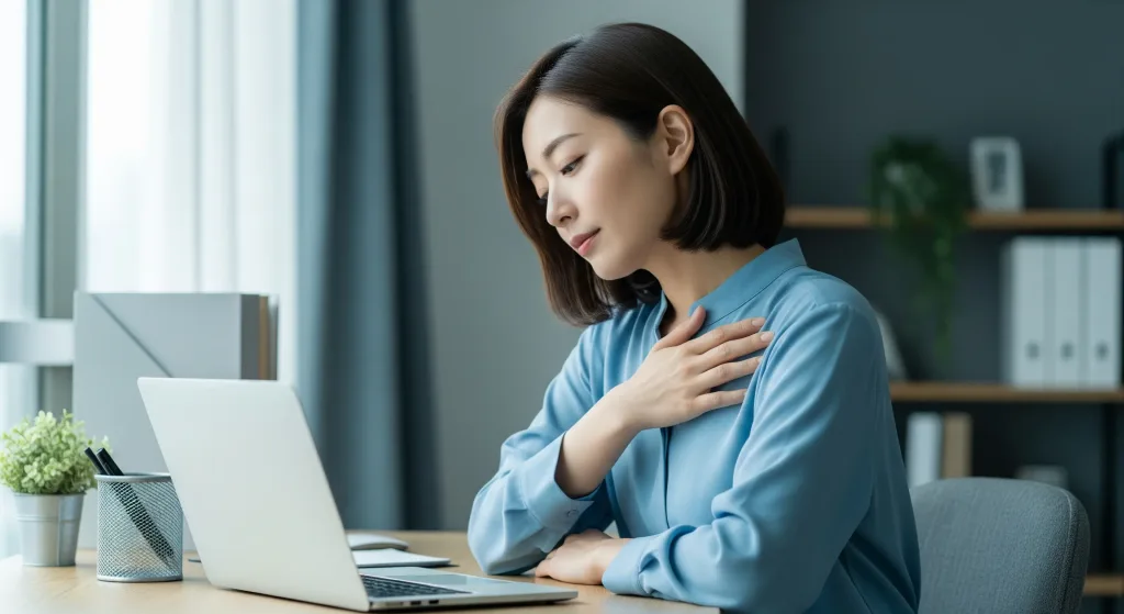 - 動悸や息苦しさ、胸の圧迫感